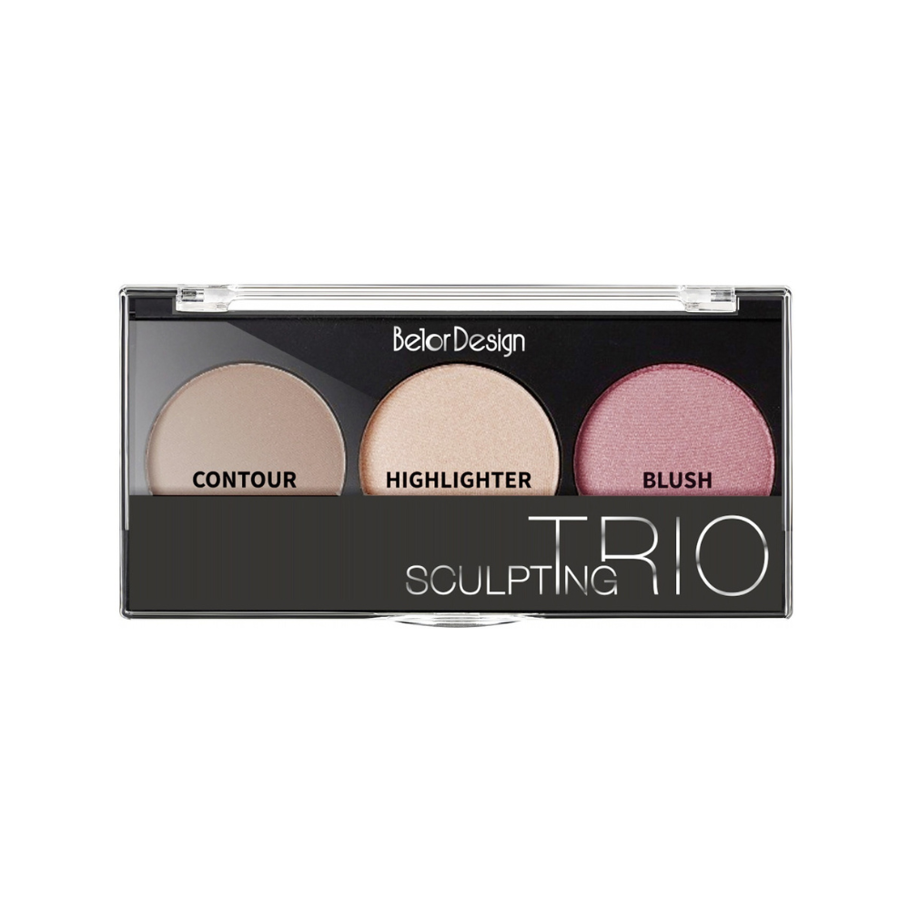Belor Design SCULPTING TRIO №1 — Набор для скульптурирования лица (скульптор, хайлайтер, румяна), 3 в 1, 12 г — универсальная палетка для создания идеального контуринга и свежего макияжа в одном продукте. Три гармонично подобранных оттенка помогают подчеркнуть скулы, освежить цвет лица и добавить деликатное сияние. Сухая текстура легко растушёвывается, не оставляет пятен и обеспечивает аккуратный натуральный результат, подходящий как для дневного, так и для вечернего образа. Оттенок №1 имеет тёплый подтон, идеально подходящий для мягкого естественного макияжа.