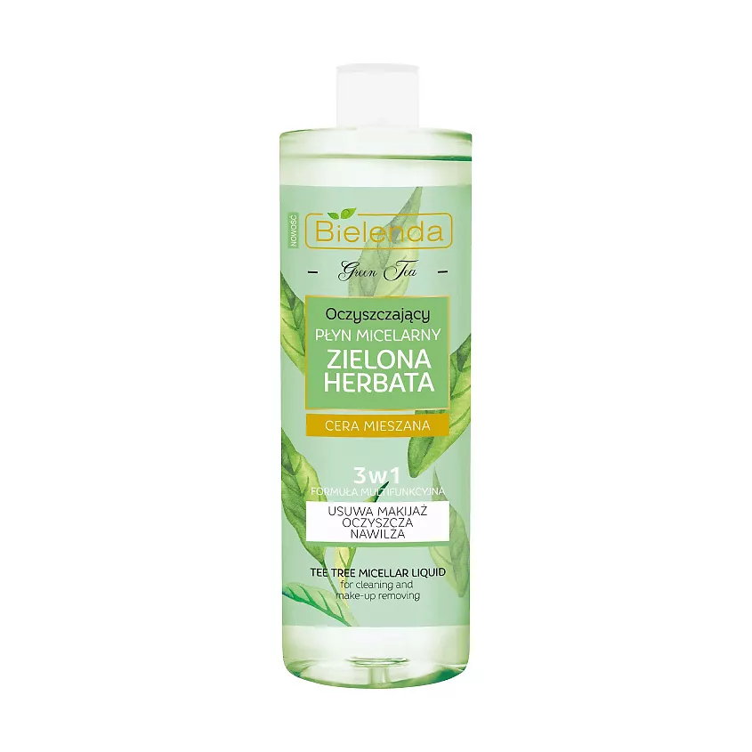 BIELENDA Green Tea Micellar Water 3in1 — Очищающая мицеллярная вода с зелёным чаем, 500 мл — это универсальное средство для бережного очищения кожи, которое эффективно удаляет макияж, загрязнения и излишки себума, не пересушивая и не раздражая кожу. Мицеллярная формула действует как «магнит» для загрязнений, мягко очищая поры и оставляя кожу свежей, чистой и комфортной без липкости и стянутости. Средство сочетает уход и очищение, улучшая общий тон кожи и придавая ей более ухоженный вид