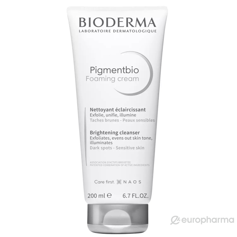 Bioderma Pigmentbio Foaming Cream — Крем-пенка для умывания с осветляющим эффектом, 200 мл — это дерматологическое очищающее средство с мягким отшелушивающим действием, созданное для кожи с пигментацией и неровным тоном. Кремовая текстура превращается в нежную пену, эффективно удаляет загрязнения, себум и остатки макияжа, одновременно выравнивая тон кожи и придавая ей здоровое сияние. Формула без мыла деликатно очищает, не нарушая защитный барьер, и помогает постепенно уменьшать пигментные пятна и предотвращать их повторное появление