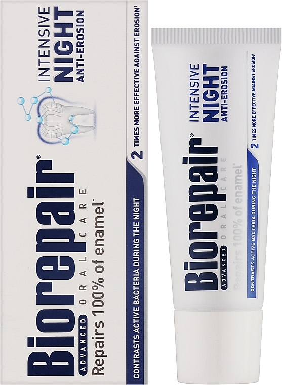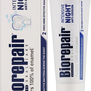 Ночная зубная паста для интенсивного восстановления эмали и защиты полости рта в период сна, когда естественные защитные механизмы снижаются. Средство эффективно укрепляет зубы, уменьшает чувствительность и препятствует размножению бактерий, обеспечивая комплексную защиту от кариеса и налета. Благодаря технологии microRepair® паста заполняет микроповреждения эмали, делая зубы более гладкими, крепкими и устойчивыми к воздействию кислот и бактерий.