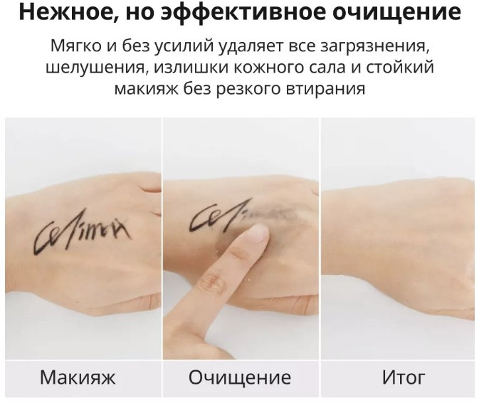 Способ применения:  нанесите необходимое количество средства на сухую кожу и помассируйте, добавьте воды и продолжайте массировать до образования эмульсии. Смойте остатки средства тёплой водой, продолжите очищение с помощью геля или пенки для умывания.
