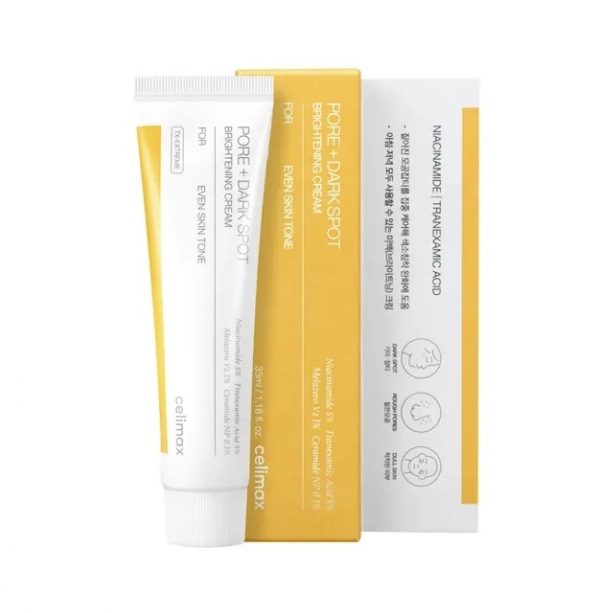 Celimax PORE+DARK SPOT BRIGHTENING CREAM — это осветляющий крем для лица, направленный на выравнивание тона кожи, уменьшение пигментации и улучшение текстуры. Лёгкая, увлажняющая формула помогает сократить видимость пор, контролирует выработку себума и придаёт коже более гладкий и сияющий вид. Активные компоненты воздействуют на выработку меланина, осветляют постакне и тёмные пятна, одновременно укрепляя защитный барьер кожи.