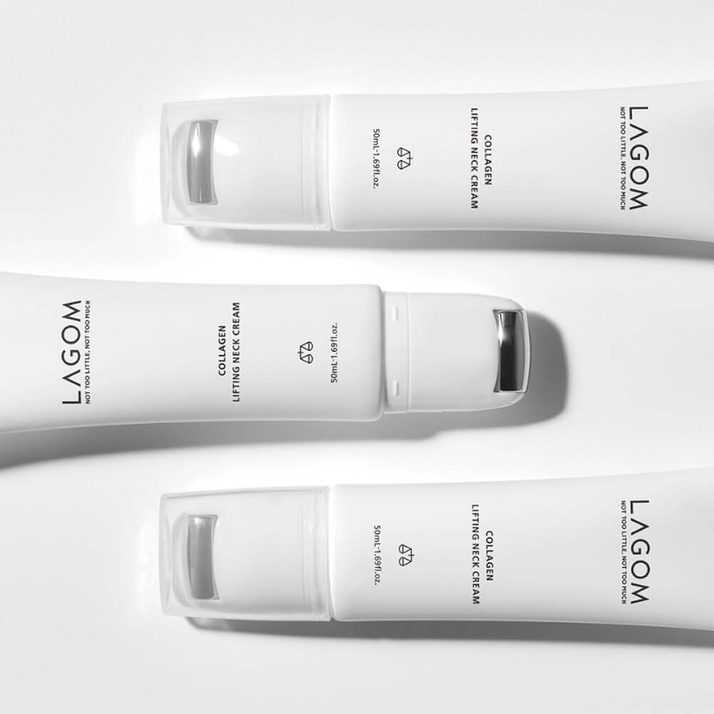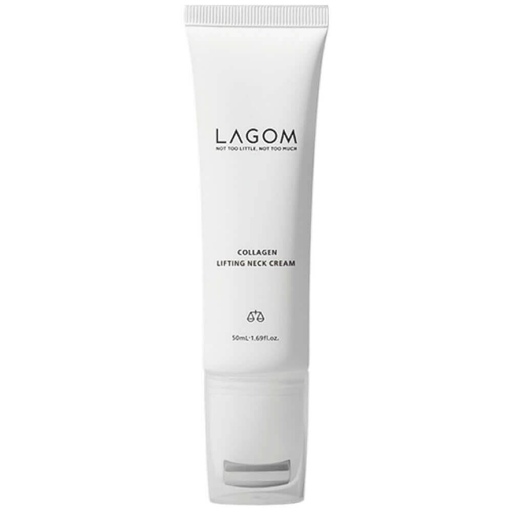 Массажный лифтинг-крем для шеи Lagom Collagen Lifting Neck Cream укрепляет и препятствует птозу, питает и уплотняет ткани, обладает лимфодренажным действием. Сокращает глубину морщин и заломов, разглаживает кольца Венеры. Подтягивает, формирует линию челюсти и ключицы.